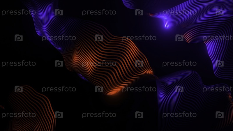 Волнистые полосы ткани перемещаются в пространстве. Дизайн. Красивая изогнутая полоса движется волнами от линий. Блестящая красивая группа волнистых линий