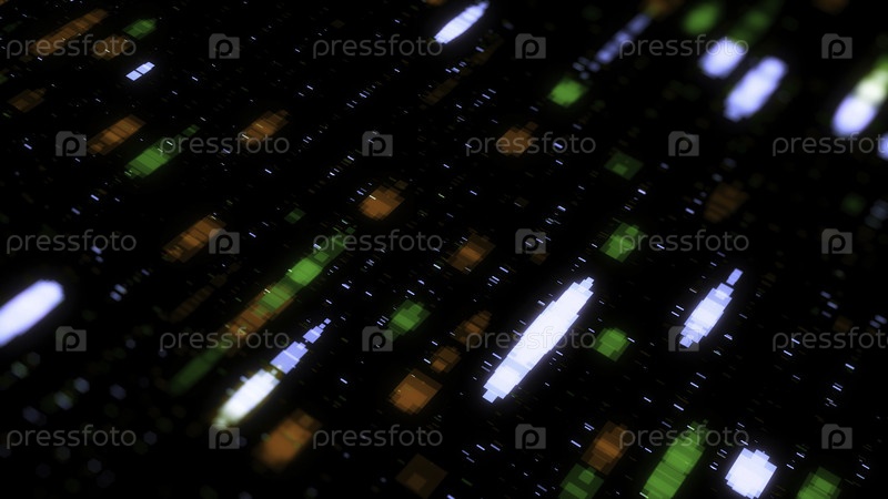 Яркие светящиеся линии на черном фоне. Анимация. Киберпространство с цифровыми штрихами и линиями, появляющимися и изменяющимися на черном фоне. Цифровой космический дождь