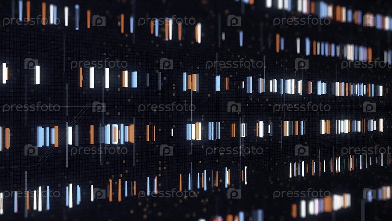 3D электронный фон с движущимися неонными полосами. Анимация. Неонные полосы перемещаются в ряды на черном цифровом фоне. Цифровое поле с двигающимися световыми сетевыми лентами