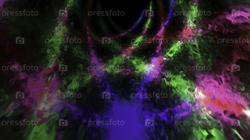 Поток движущихся пузырей и цветных линий. Движение. Проекция цветной световой линии на поток пузырьков. Набор двигающихся частиц с проекцией светлых линий
