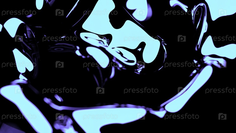 Черный фон с синими и белыми пятнами, распространяющимися. Дизайн. Пятна распыления, выполненные в формате 3d