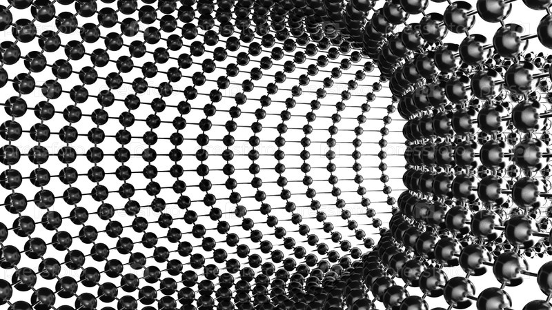 Металлическая абстрактная трубопроводная сеть, 3D-технология.Дизайн.Летать внутри изгибающейся трубы металлических сфер