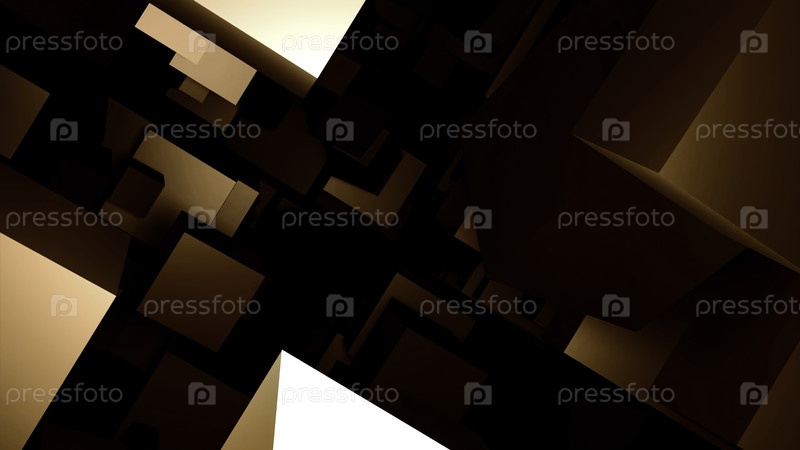Движение в темных 3D-кубиках.Дизайн.Поток кубиков, летящих медленно с игрой эффекта света и тени