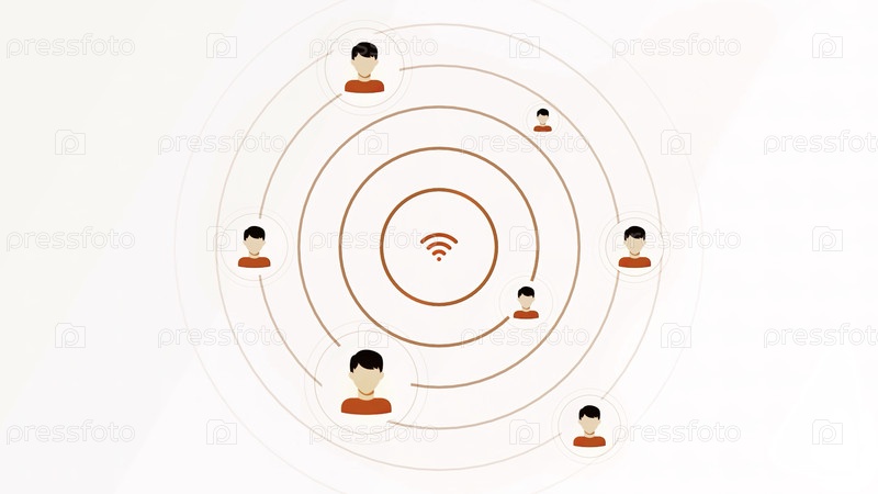 Концепция распространения Интернета с помощью красно-синих значков Wi-Fi и подключения пользователей видна в анимации
