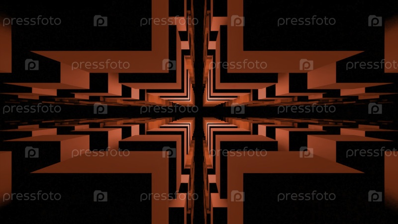 Разрыв в пространстве квадратов. Дизайн. Сакральная трещина в лабиринте. 3D-пространство квадратов с темной щелчкой. Темная узкая пропасть в квадратном туннеле