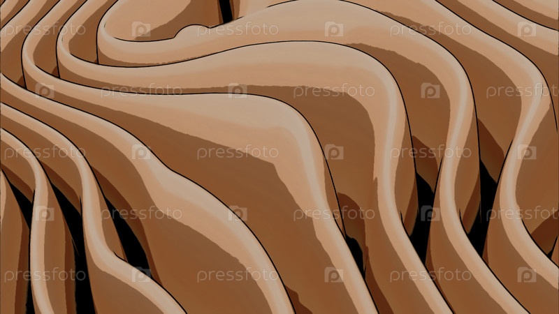 Фон со складывающимися слоями текстиля, левитирующим, 3D-дизайном. оранжевые текстильные драпировки в стиле мультфильмов