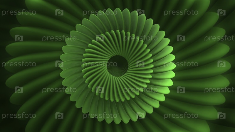 Яркая зеленая абстракция. Движение. Цветоподобный спираль, который вращается и меняет масштаб