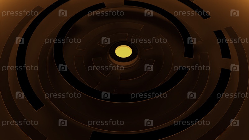Светящаяся точка в центре с вращающимися кольцами. Дизайн. Футуристический механизм со светящейся кнопкой и вращающимися кольцами. Механизм с кнопкой в пространственном стиле