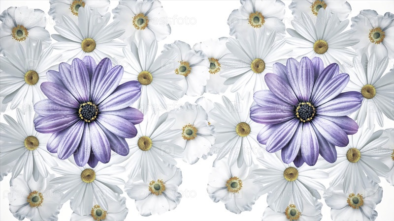 Набор белых и фиолетовых различных летних цветочных почках, вращающихся, изолированных на белом фоне