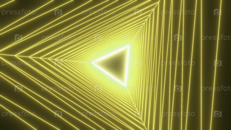 Футуристический тоннель с неоновыми огнями. Движение. Пирамидальные формы, создающие эффект туннеля