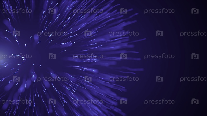 Абстрактный взрыв белой звезды в голубом небе.Движение.Звездный фон с космической пылью, летящей во все стороны