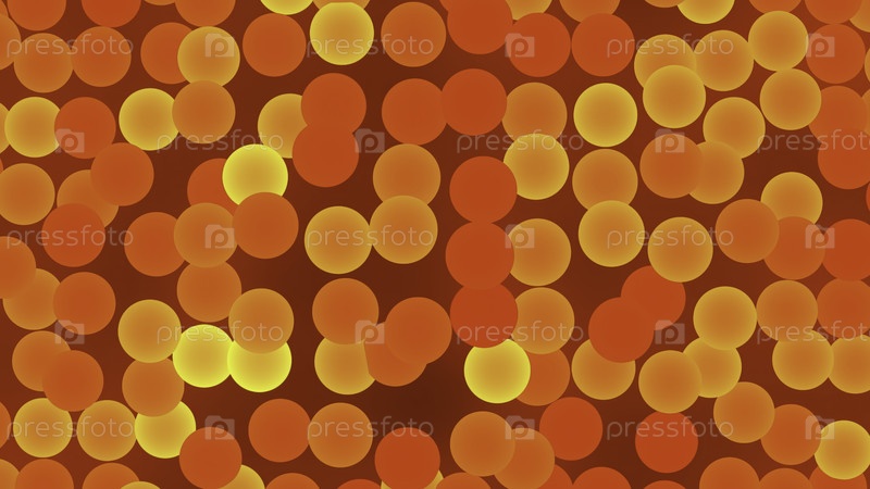 Оранжевые и красные светящиеся сферы, образующие абстрактный геометрический узор