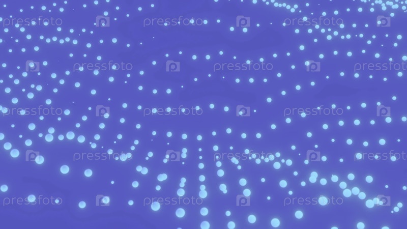 Синий фон.Дизайн.Белые блестящие круги, которые прыгают с разных сторон в абстракции