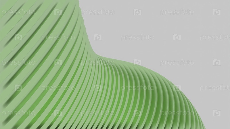 3D-анимация с движущейся волнообразной полосовой фигурой. Дизайн. Движущаяся 3d-фигура с полосатыми вырезками. Полосатые 3d-фигуры перемещаются в волнистом потоке на белом фоне