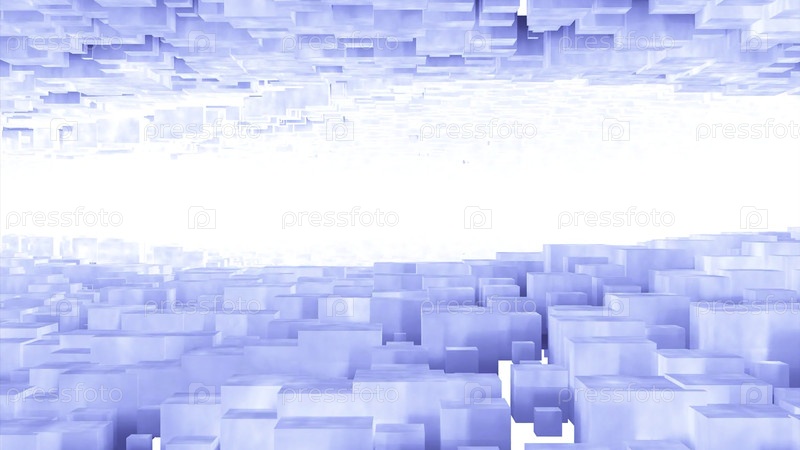 Фон полета среди ящиков. Дизайн. 3D-кубики и световой коридор