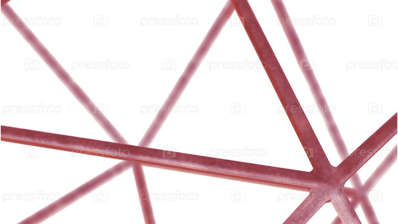 Футуристическая красочная соединенная структура на белом фоне. Дизайн. Прямые металлические стержни, связанные друг с другом
