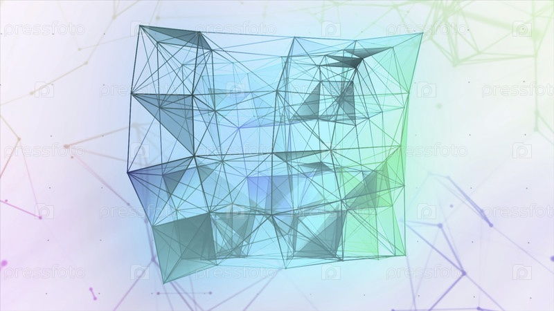 Абстрактный неон-плекс, трансформирующий куб на черном фоне.Движение 3D движущийся кубический силуэт в цифровом мире