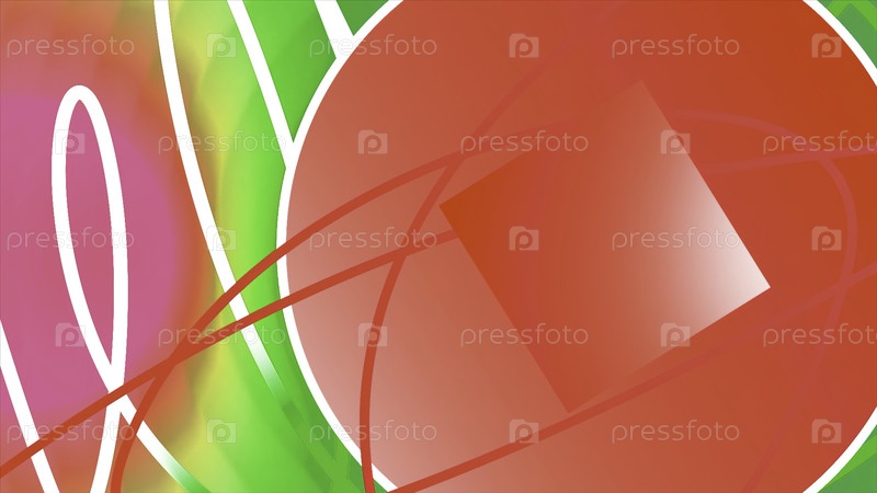 Абстрактные геометрические формы в контрастных ярких цветах. Движение. Большой круг с квадратом внутри, пространство для текста и многоцветные фигуры