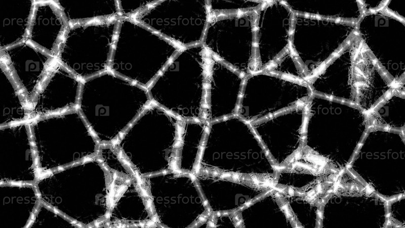 Линии светящегося узора с движущимися клетками. Дизайн. Изменение образов клеток с яркими линиями на черном фоне. Импульсы в движущихся моделях с геометрическими ячейками