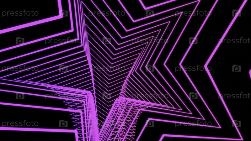 Движущийся туннель из линий в форме звезды. Дизайн. Красивый тоннель в форме звезды на черном фоне. Туннель - это звезда в петлевом движении в темном пространстве