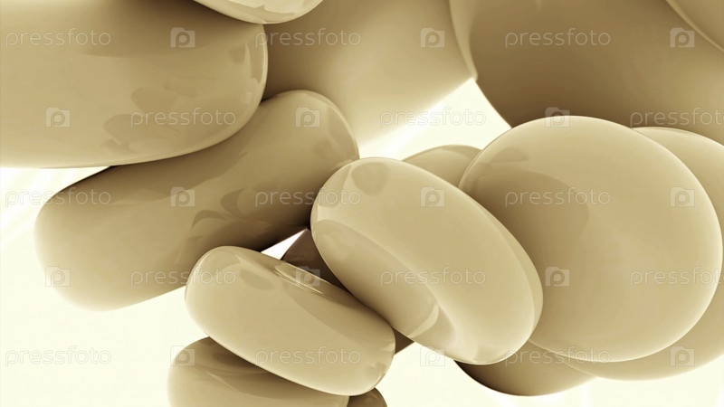 Глянцевые 3D фигуры перемещаются по спиралям. Дизайн. Круглые 3d тортильи движутся в вращающемся потоке. Гладкие круглые фигуры передвигаются по спиралкам на белом фоне