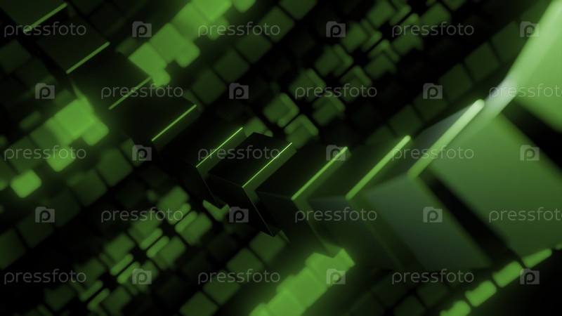 Зеленые узоры из квадратов. Дизайн. Яркий 3D-фон с движущимися шаблонами, которые перемещаются друг от друга в разных направлениях. Высокое качество 4k кадров