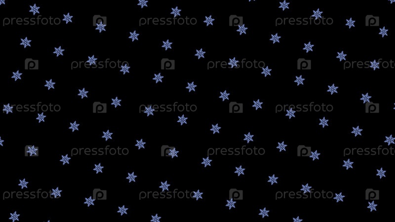 Повторяющийся рисунок вращающихся снежин на черном фоне. Анимация. Простой фон повторяющихся снежин, вращающихся на черном фоне. Зимний рисунок снежин