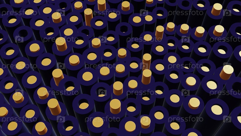 Колонны, движущиеся волнами. Движение. Анимация с большим количеством двигающихся цилиндров со штангами. анимированный фон с 3D-колоннами растущих волн