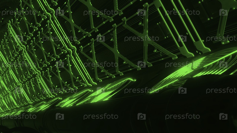 Туннель с технологическими неоновыми деталями. Движение. туннель в стиле космического корабля с неонными деталями. канал системы вентиляции в футуристическом стиле