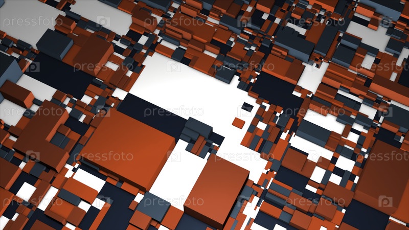 Фон абстрактных кубических форм. Движение. Технологический фон пикселей и 3D-кубов. Приближения абстрактного кубического фона с пространственными искажениями