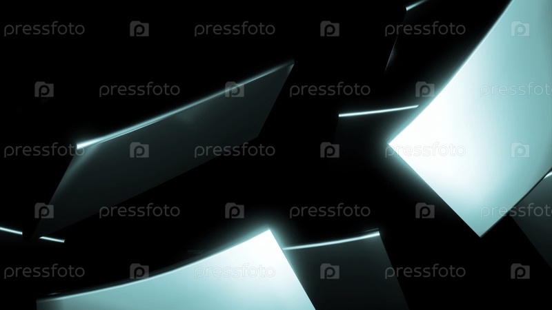 Абстрактные вращающиеся неоновые плитки с светящимися краями на черном фоне.Дизайн.Трудящиеся тонкие зеленые плиты