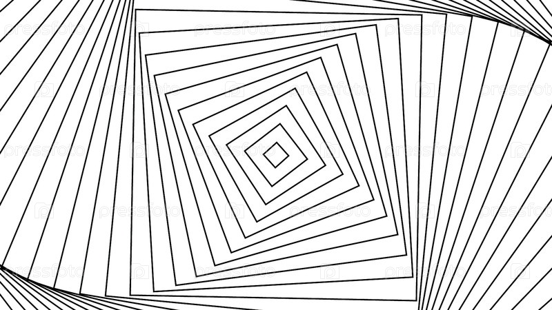 Абстрактная гипнотическая оптическая иллюзия вращающихся квадратов, бесшовный цикл. Движение. Витящие ромбы создают эффект монохромного вихря