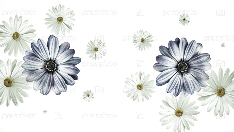 Анимация летающих реалистичных цветочных почках на черном фоне. Бесшовная анимация красочной цветковой графики движения с текстурой шаблона фона