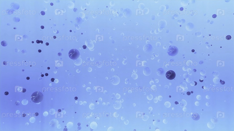 Молекулярные 3D шары вращаются в жидкости.Движение.3D молекулы движутся по течению на жидком фоне.Молекулы или пузыри в вращающемся потоке жидкости