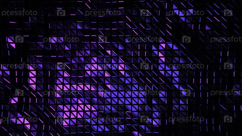 Зеркальная поверхность треугольников с цветами. Дизайн. Красивый диско фон со отражением на зеркальной поверхности с треугольниками. Треугольная поверхность, отражающая движущиеся цвета