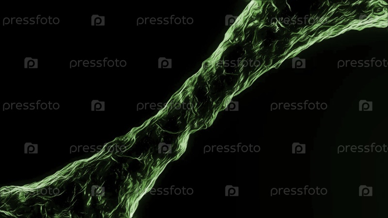 Движение 3D водяного туннеля в космосе. Анимация. Боковой вид движущегося 3D потока жидкости на черном фоне. Жидкая труба перемещается по энергетическому потоку. Магия воды