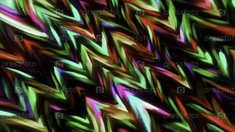 Яркие изгибающиеся треугольные фигуры. Движение. Черный фон с освещенными геометрическими формами, которые мерцают в абстракции. Высокое качество 4k кадров