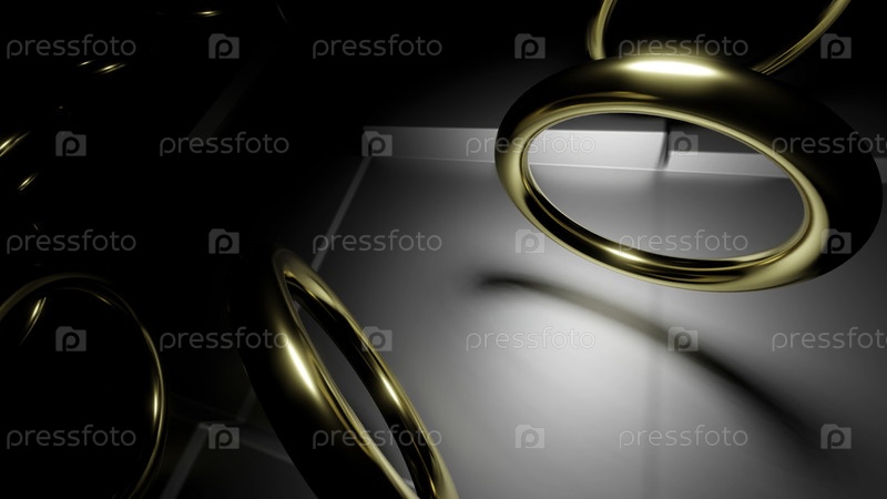 Абстрактные летающие и крутящиеся металлические золотые кольца фона. Дизайн. вращающиеся круглые силуэты металлических силуэт