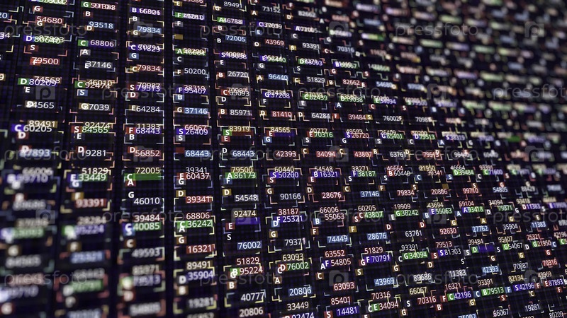 Абстрактный фон чисел в ячейках.Анимация.Компьютерный фон с множеством цветных цифр и клеток, движущихся и меняющихся на черном фоне.Числовой фон
