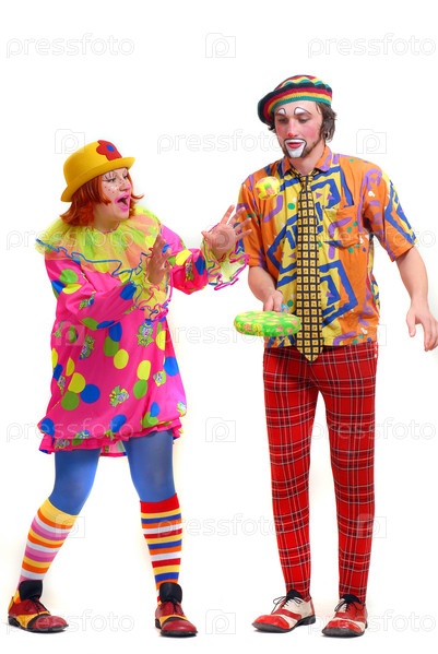 Клоуны, на белом фоне
