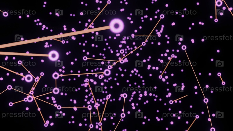 Плекс абстрактных линий, треугольников и точек. Дизайн. Абстрактный бесконечный цифровой мир фиолетового цвета
