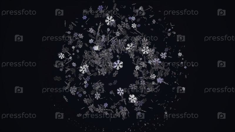 Абстрактный анимированный рождественский фон с красивыми мерцающими снежинками, вращающимися на красочном фоне