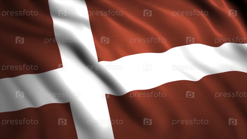Ярко-красный флаг Дании.Движение.Национальный символ Дании с белым крестом, выполненным в компьютерной графике.Высокое качество 4k кадров