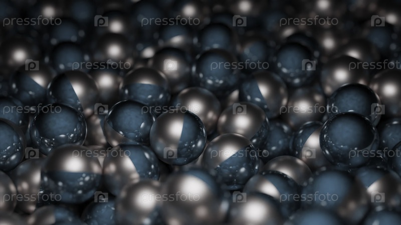 Цветные металлические шары передвигаются в потоке. Дизайн. Металлические 3D-шары движутся в большом количестве в потоке. Многие 3D-шар с металлической текстурой в движении
