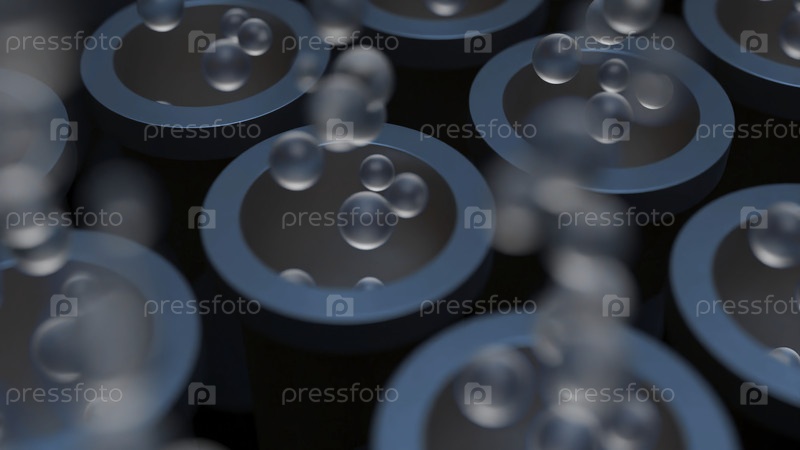 Трехмерные трубы с пузырями. Дизайн. Поле с трубами и растущими пузырями. Трубы, высвобождающие потоки пузырей