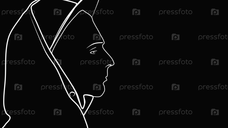 Анимация курящего парня. Повторяющиеся движения сигарет с защищенным программным обеспечением. Картина белого силуэта на черном фоне