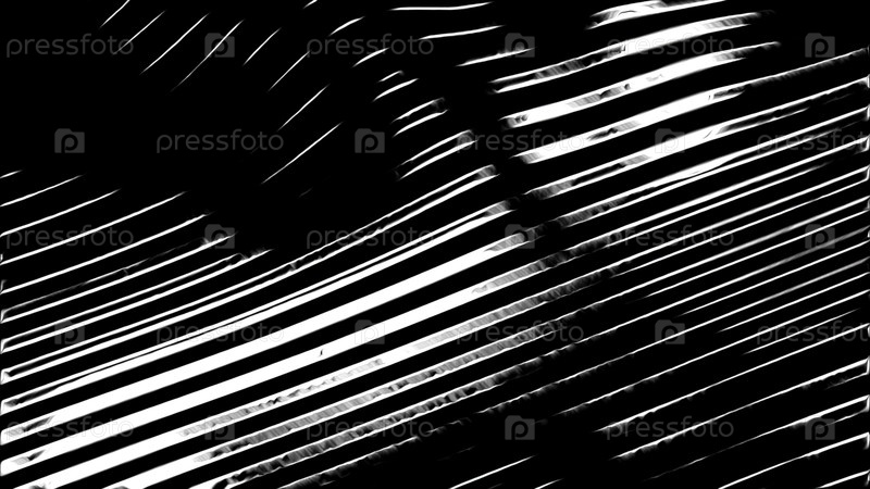3D абстрактные блестящие отражающие металлические волны узких полос. Дизайн. Черно-белый промышленный фон с изогнутыми линиями