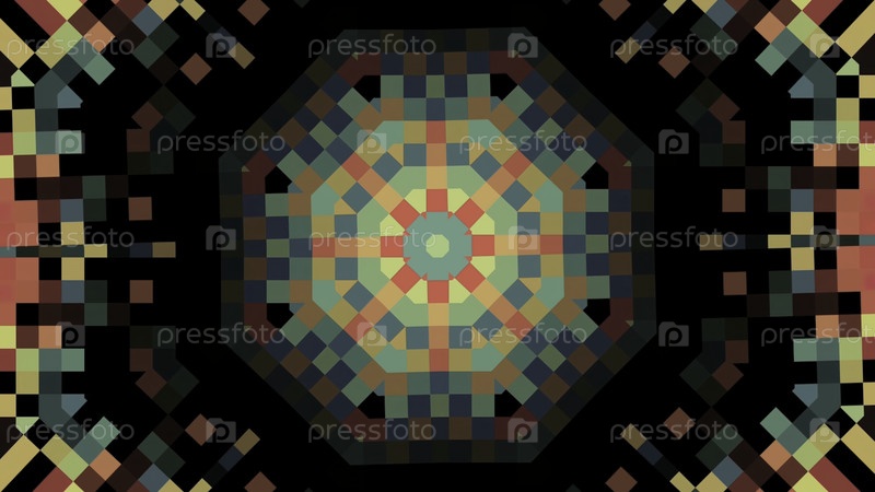 Красивый абстрактный многоцветный рисунок, состоящий из пикселей, которые движутся, растут и исчезают на черном фоне.Анимация.Уникальная абстрактная пиксельная анимация