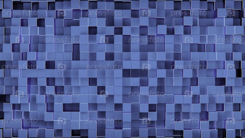Фонд с движущимися хаотическими кубиками. Дизайн. Фон с квадратами, простирающимися в поле. 3D-кубики двигаются как стена