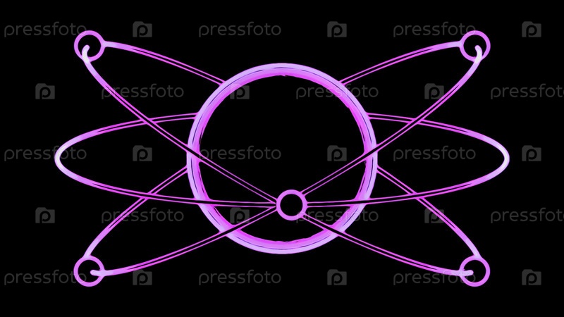 Анимация движущихся частиц на орбите атома. Дизайн. Простая анимация с перемещающимися электронами вокруг атома. Траектория электронов вокруг атома на черном фоне